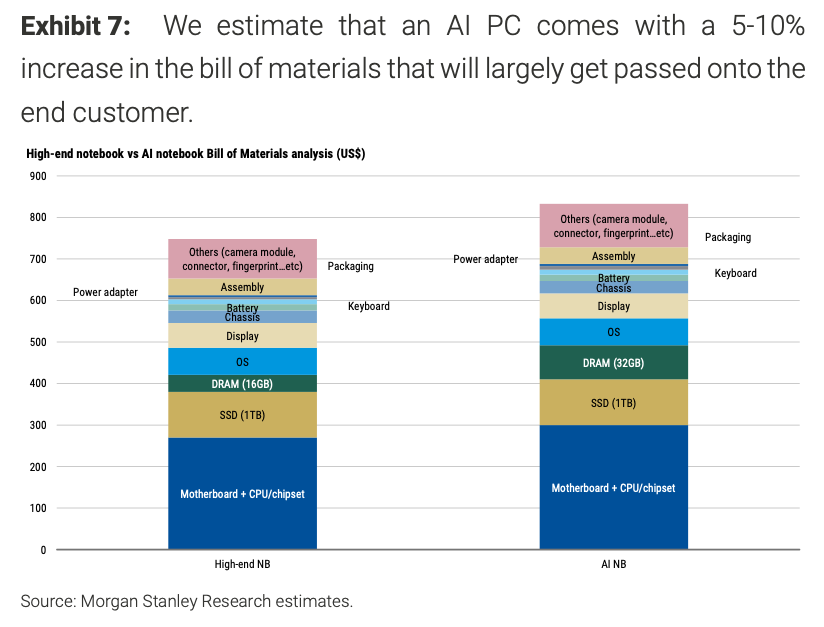 因此,即使不考虑killer app带来的超强换机周期,仅仅是从普通的手机和PC切换为AI手机、AI PC带来的价值增量就是难以忽视的: