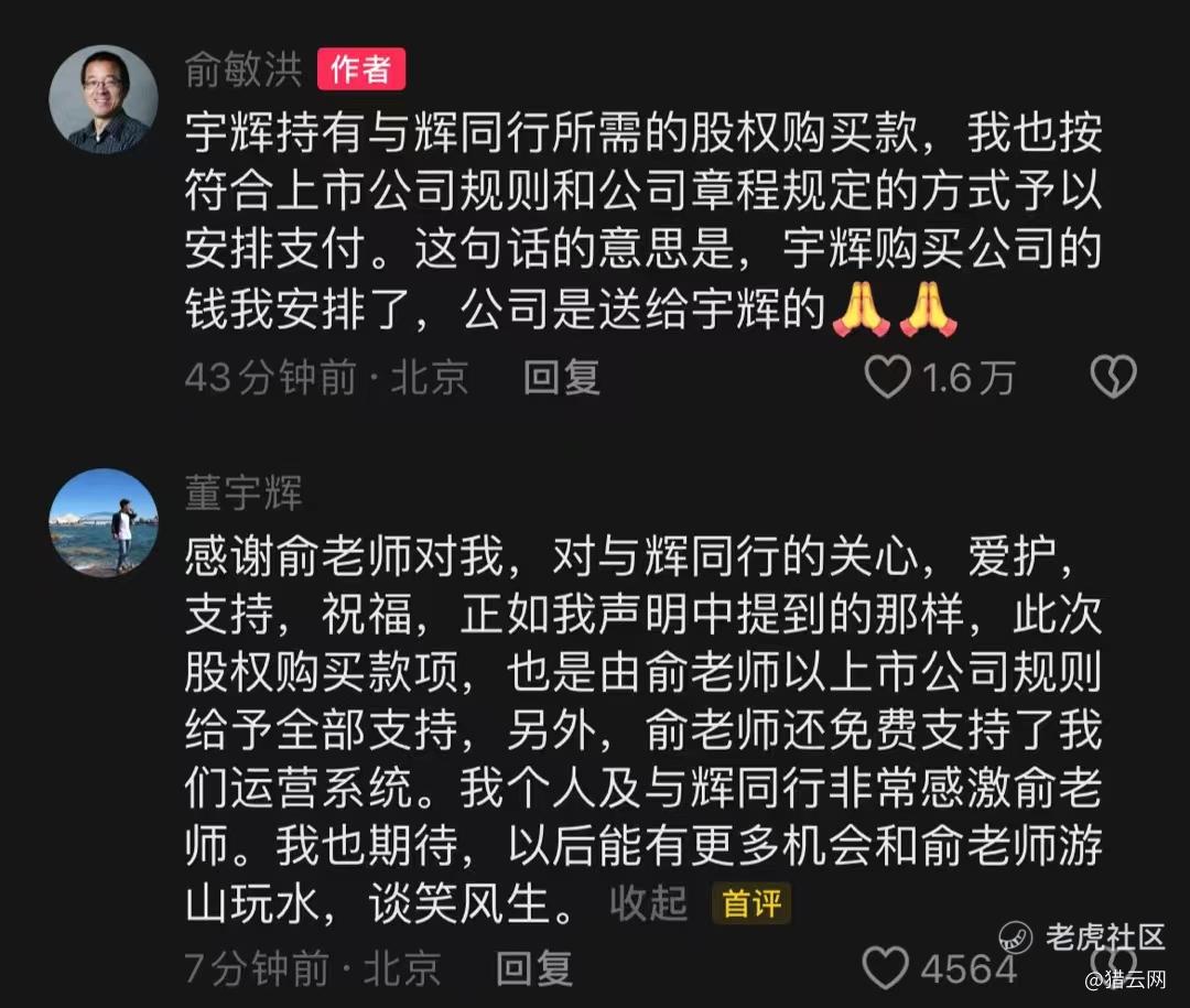 此外,根据上市规则及本公司组织章程细则,俞敏洪已就董宇辉收购与辉同行的结算代价作出安排。为维持与辉同行的正常运营,公司将向与辉同行免费提供自主研发的信息系统。