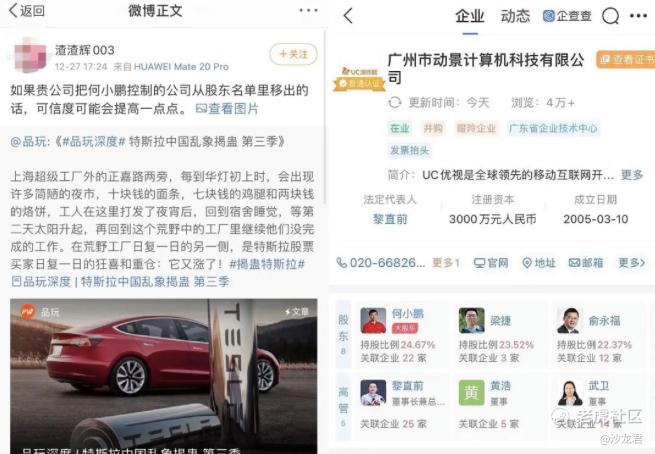 结果,一不小心又被品玩打脸。这次和品玩的交锋中,出现了一大批言论,说小鹏汽车创始人何小鹏是品玩的股东,并对品玩的股东进行扒灰。结果,这些微博发布的操作,都被品玩抓到了把柄。