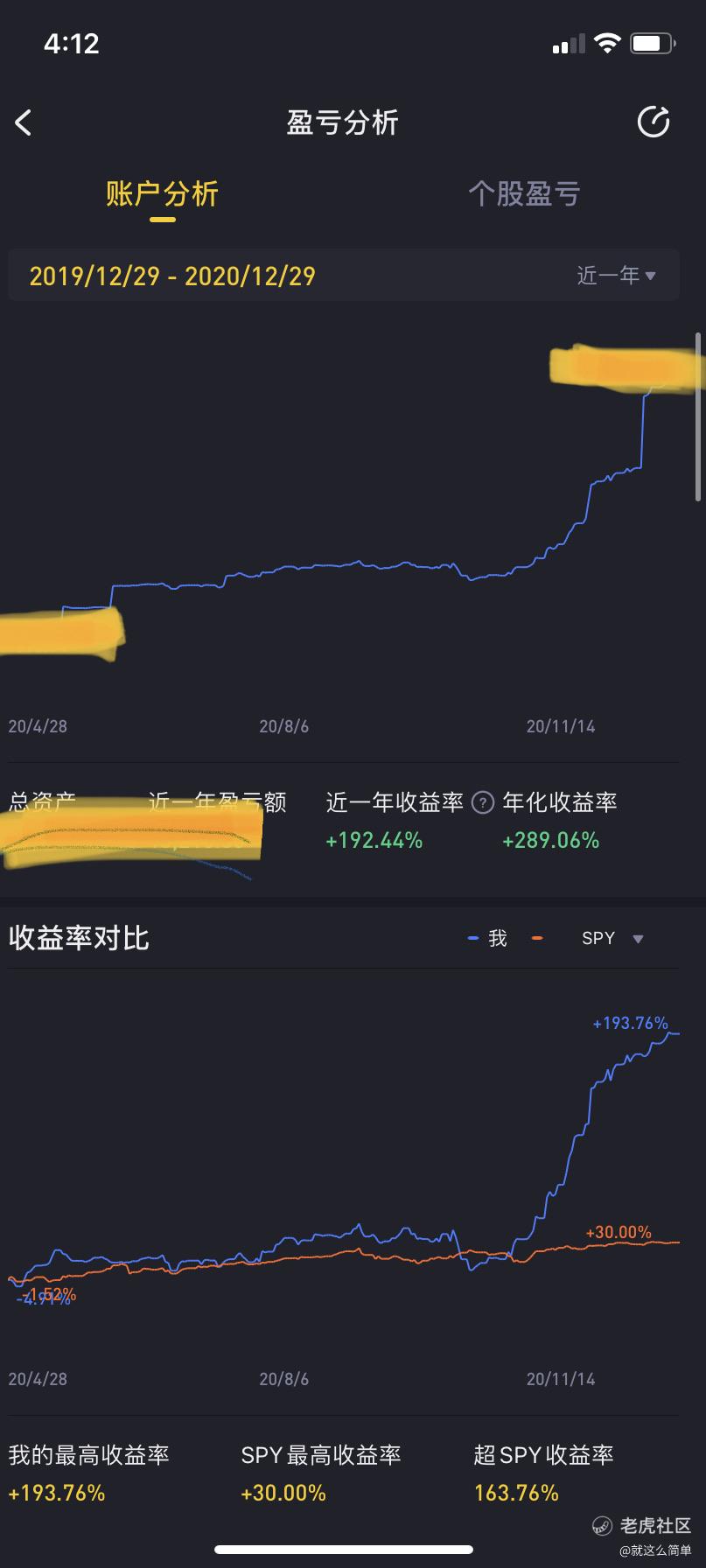 过去的日子玩的都是A股,感觉今年开了美股更刺激。2月份大跌的时候之前就想玩美股,一直不知道有什么平台,干看到了4月份才知道老虎🐯能投资美股。虽说进场进晚了也幸亏波段策略都抓的很准,才可以有不错的收益。年中的半导体,$AMD(AMD)$9月特斯拉拆股后的大回调$纳指三倍做空ETF(SQQQ)$,10月的反弹波和向下调整,11月的复苏股$诺德斯特龙(JWN)$和12月的SPAC。