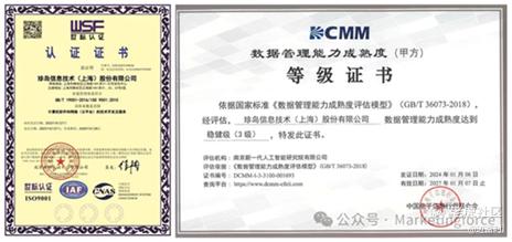 Marketingforce的产品在数据存储、传输和处理过程中,采用先进的加密技术和安全协议,防止数据泄露和未经授权的访问。公司还通过了ISO 9001等国际信息安全管理体系认证,确保安全管理的规范化和系统化。此外,依据国家标准《数据管理能力成熟度评估模型》,Marketingforce被评为“稳健型”,代表着Marketingforce在数据战略、数据治理、数据架构、数据应用、数据安全、数据质量、数据标准和数据生存周期层面上制定了系列的标准化管理流程,实现数据管理的规范化。