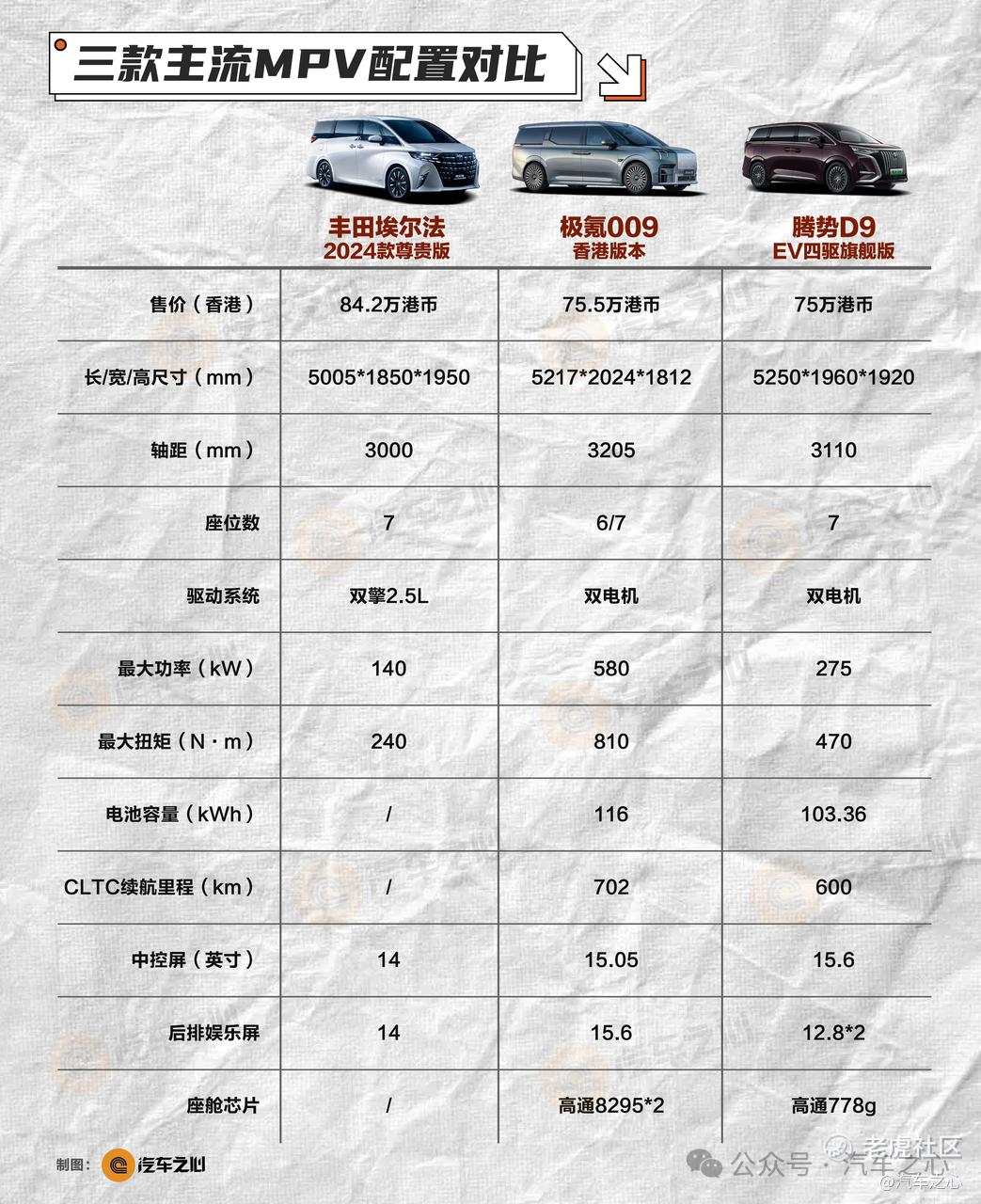 这也说明,内地车企在香港跟埃尔法的打法是贴身肉搏,靠扎实的产品力说话;毕竟,国产 MPV 在配置上比埃尔法来得更加实用。