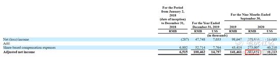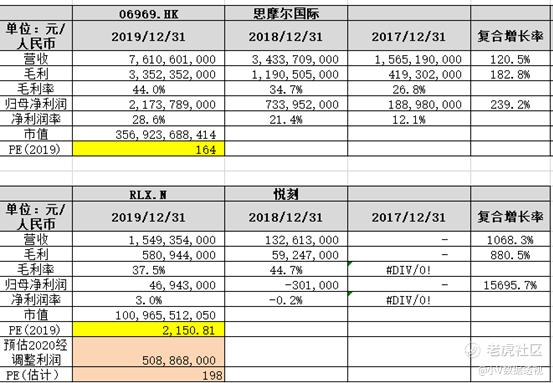 一开始觉得RLX的定价高得吓人,但其实把股权激励的影响去掉,公司2020年1-9月的利润有3.8亿,简单线性推导,2020年全年利润可能是5亿左右,所以大概也就是200倍PE,考虑到2020年1-9月的经调整利润对比2019年同期增长高达170%,这个定价也还可以接受,而且思摩尔国际的的估值也就差不多的水平。