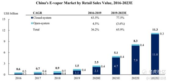 中国电子烟的市场过去四年的年复合增长是36.2%;预计未来五年的年复合增速达65.9%,这个增速别说一般传统行业,就算是互联网,新能源这些赛道也没有这么高的增速。本来给9分也不过分,但扣分点就是这个行业可能会面临监管的压力,然后就…….