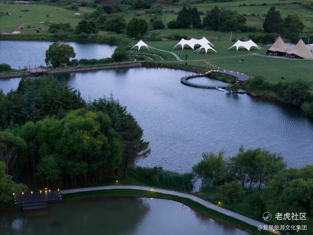 回到2019年,复星旅文宣布建造丽江地中海国际度假区,度假区南据白沙古镇,北依玉龙雪山,占地约1300亩,内部全面保留了草甸、溪流、树木等生态原貌。度假区定位为一站式休闲旅居度假目的地,包含了Club Med丽江度假村、阿美泽雪山营地的前身——湖区营地、地中海棠岸度假酒店、商业街区,以及可售的旅居度假屋。2021年9月,度假区伴随着Club Med度假村的正式开业而迎客。