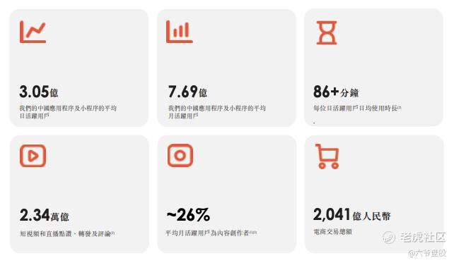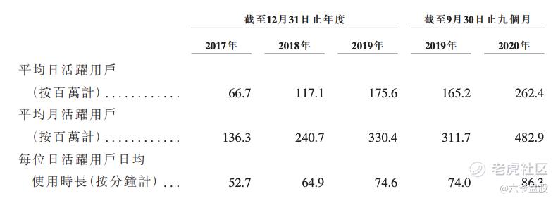 截至2020年9月30日止九个月,快手的中国应用程序(APP)及小程序的平均日活跃用户及平均月活跃用户分别为3.05亿及7.69亿。