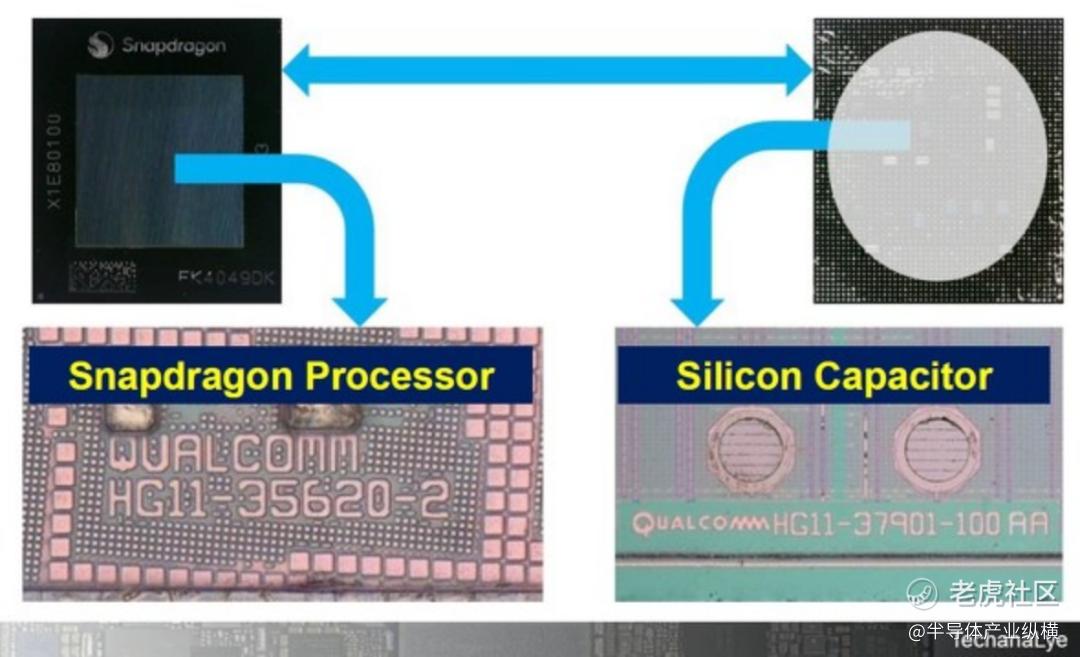 图6为高通骁龙X Elite拆开芯片后的芯片型号名称。该处理器采用台积电4nm工艺制造。封装中还包含了许多硅电容器以稳定特性,这些电容器也是由高通设计的。我们对高通芯片进行了开箱分析,包括电源IC,大量芯片与智能手机芯片配置相同。