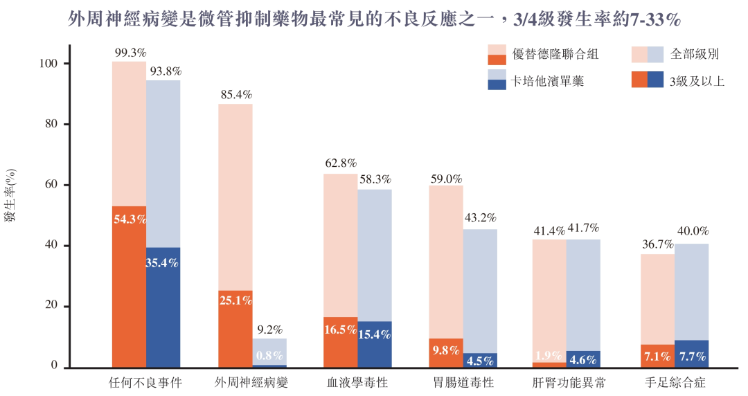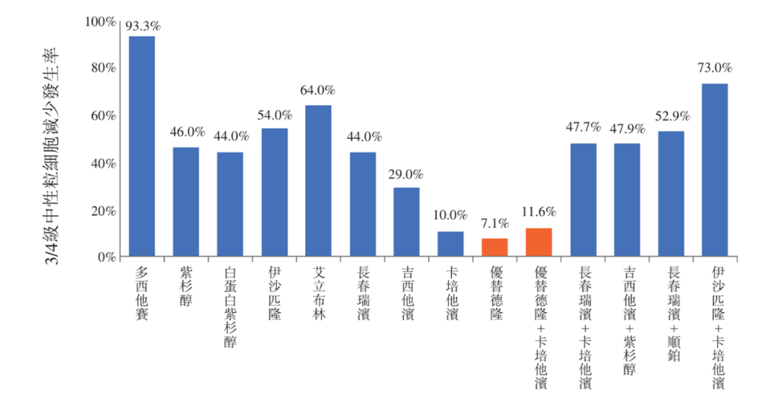 并且根据已发表的研究,优替德隆单药或联合治疗及其他化疗的非头对头3/4级中性粒细胞减少发生率更低。