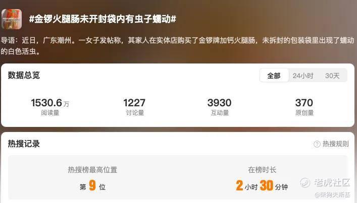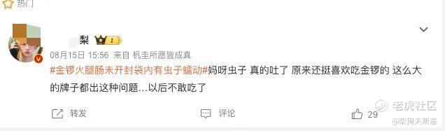 比如,这两天,又一家咱们从小吃到大的火腿肠品牌,又陷入类似的争议,并快速冲上热搜——金锣火腿肠未开封袋内有虫子蠕动。