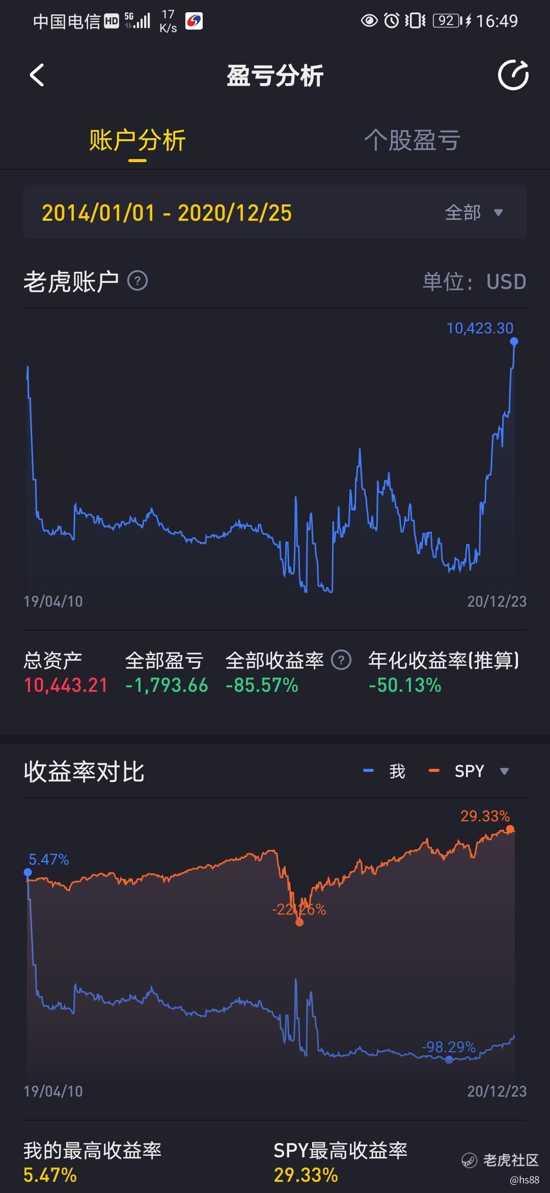 在美股最开始的操作的1月多月里,因为小白,账户呈现瀑布式下滑,曾一度想要放弃,后来下决心要在哪里跌倒就在哪里爬起,一直在美股市场浮浮沉沉。可以看到中间有3次90度上涨,两次是靠运气,一次是因为入金3000。靠运气赚来的钱最终还是会靠实力亏回去。账户金额在十月底还是亏损到了一千三百多美元。但在这时我又更新了了自己的交易系统,没想到会让我一飞冲天。在今年的最后两个月里,靠期权我的账户翻了近10倍,一年半的亏损也马上就要回本。跟很多持有理想,蔚来,小鹏,特斯拉还有非洲电商jmia等等的大神来比,这些人人皆知的大好机会我都错过了,可能是认知没有到那程度。虽然我的收益微不足道,或者说差强人意。但是我自己在不断的亏损中总结了自己的经验,走上了盈利的道路,对于这个结果我是比较满意的。在我看来,小资金想要快速翻倍积累,期权这个工具必须占有一席之地。至于大资金有大资金的玩法,等我完成原始积累有经验了再来细说。
