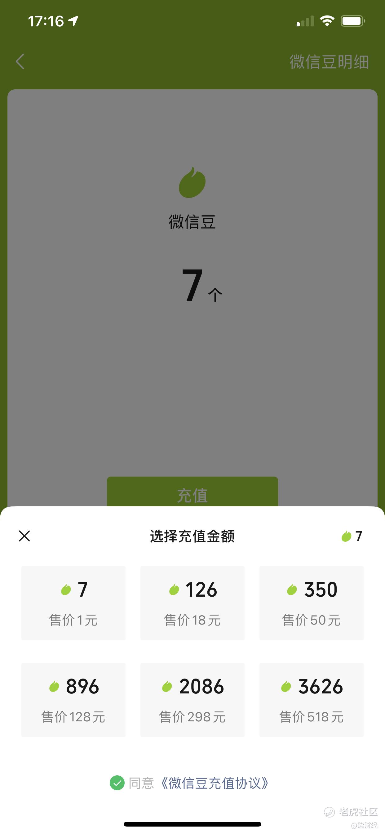 日前,不少网友发现,IOS端微信更新至版本7.0.20后,个人信息页面出现名为“微信豆”的功能,1元7个“微信豆”、18元126个“微信豆”、50元350个“微信豆”……