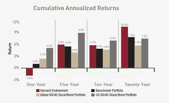 这里我再来举个例子,哈佛捐赠基金Endowment和耶鲁的是业界出门的管理出色的endowment。