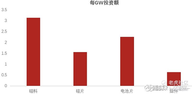 每GW投资额中,硅料环节所需资本最大,新增产能投产时间最长,