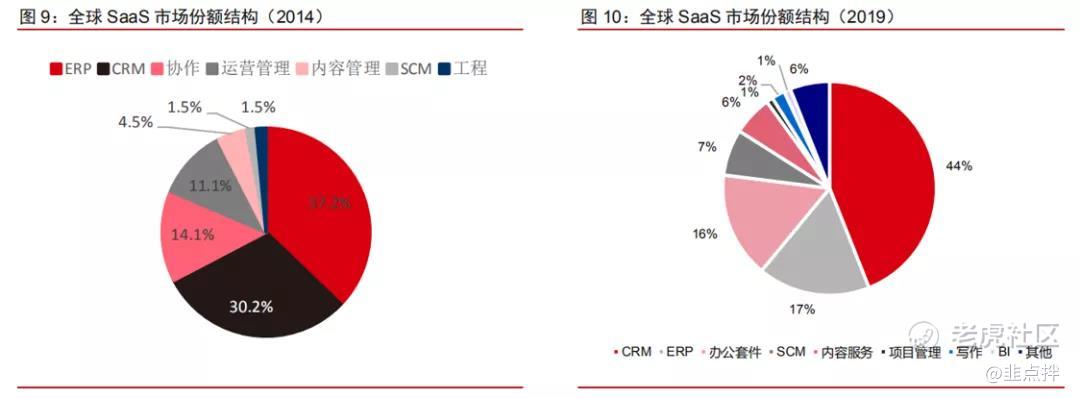 从全球云计算行业格局上看,ERP、CRM是重要赛道、办公套件同样值得关注。