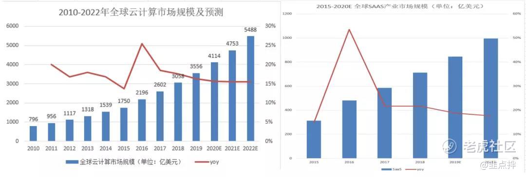 接着昨天的来,我们重点研究SAAS行业,目前全球云计算市场规模到2021年将达5000亿美元、SAAS由于起步晚,大约在1000亿美元。但理论上云计算应该是应用唱戏的局面,SAAS占比小足以证明全球云计算处于基础建设时期。