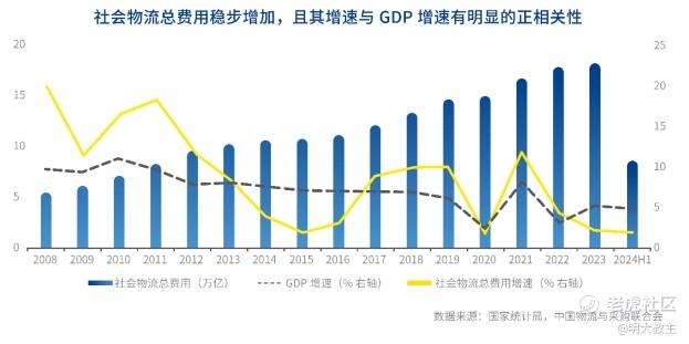 2024上半年,我国公路货运量197.7亿吨,同比增长4.0%,社会物流总费用增速也几乎是2008年以来的最低水平。