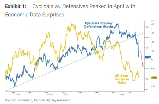 三:【摩根士丹利,Morgan Stanley】美国经济走弱强化降息预期,防御类板块将迎来机会