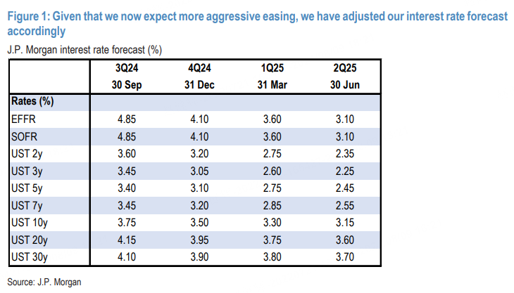 二:【摩根大通,JPMorgan Chase & Co】美国经济大幅走弱,国债收益率仍将进一步下行