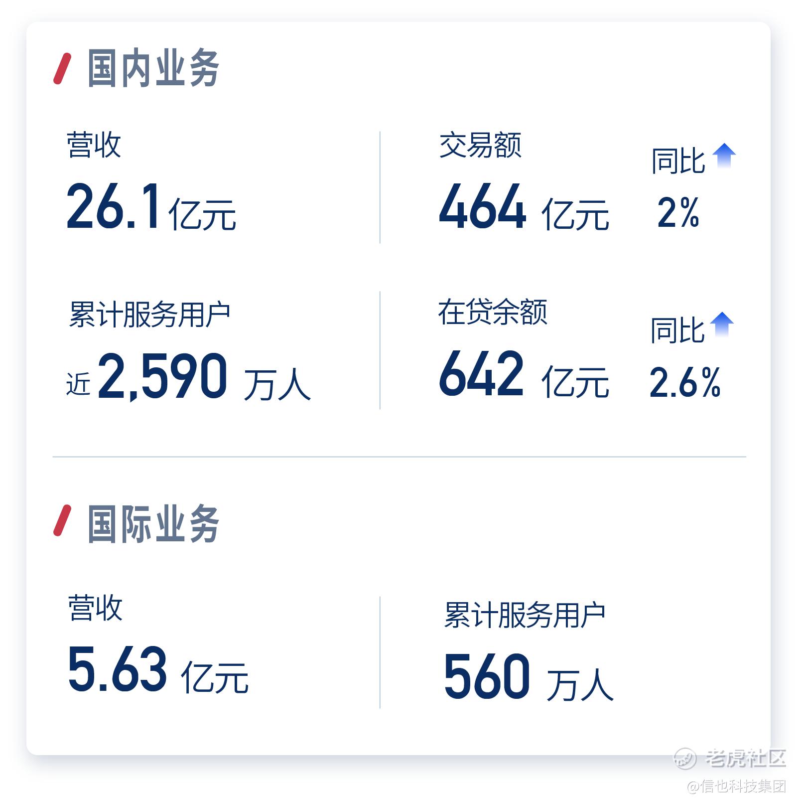 今年二季度,宏观经济运行延续恢复态势,信也科技在国内市场保持发展定力,实现二季度促成交易额464亿元,同比增长2%;在贷余额642亿元,同比增长2.6%。截至二季度末,公司累计为超过百家金融机构提供数字化服务;国内累计服务用户近2590万人。