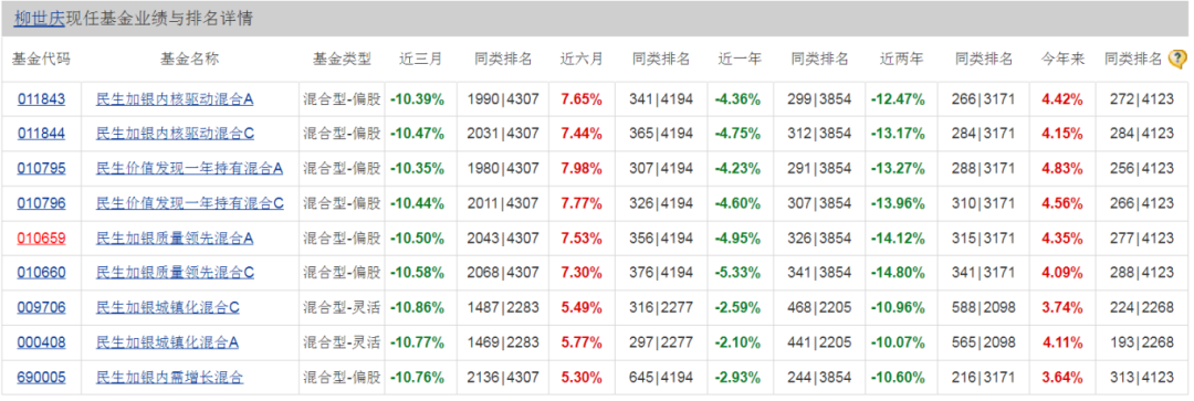 柳世庆,今年来业绩表现还行,但近两年业绩同样都是10%以上的亏损。