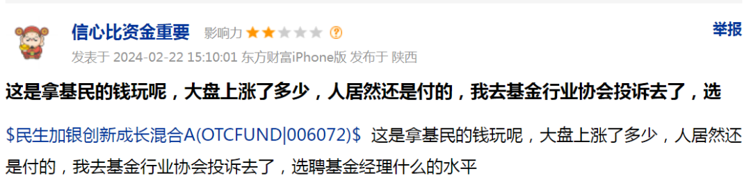 面对这个亏损幅度,基民们都要破防了,在基民交流平台,他们纷纷表达着不满、担忧和愤怒。