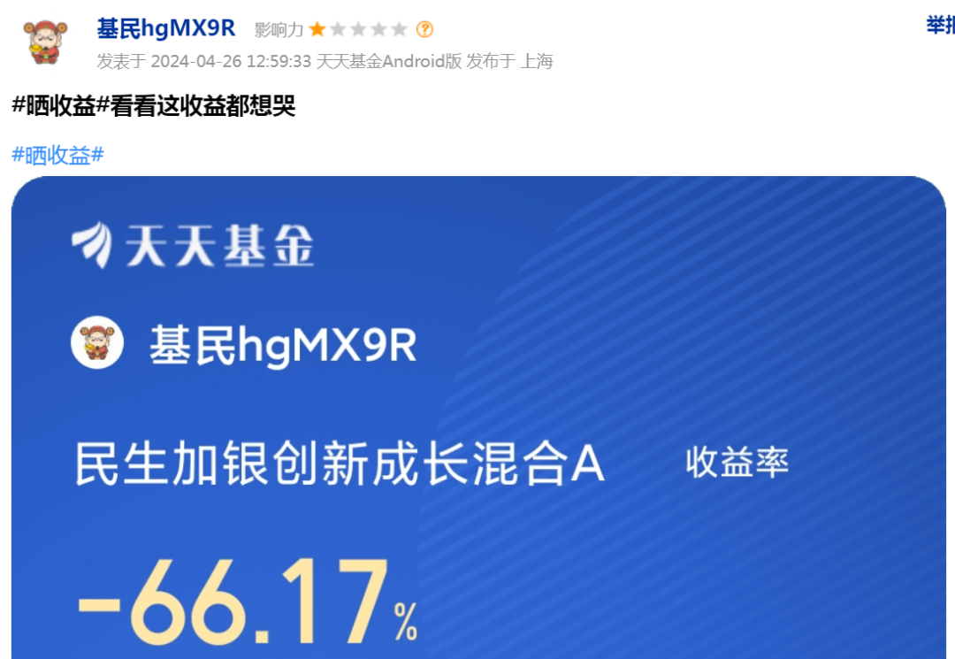天天基金网数据显示,截至2023年底,民生加银创新成长混合A的换手率是1241.24%。频繁的交易之下,业绩依旧亏损,但却产生了不菲的交易费用,加剧了投资者的损失。