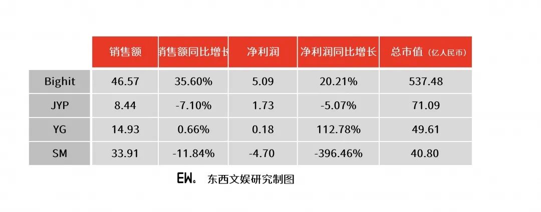 去年,随着防弹少年团所属公司Bighit在Kospi上市,原韩国上市娱乐公司“三大社”的格局正式转变为HYBE(Bighit)、SM、JYP、YG四足鼎立。