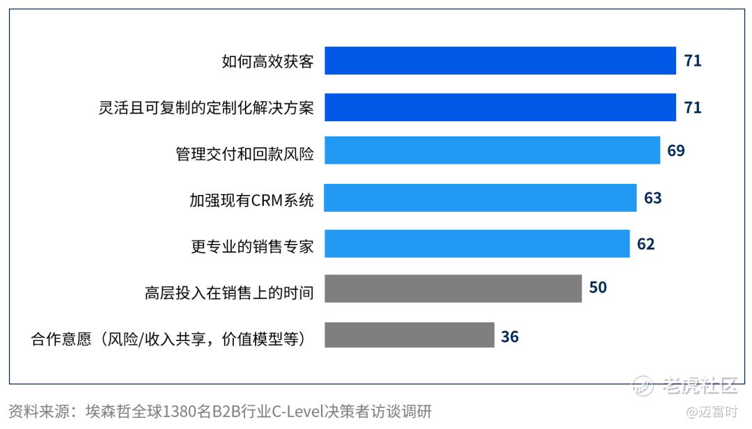 在B2B领域,客户数量相对较少,但专业性强,交易金额大,交付周期长,通常较大,如小米、华为等企业。根据埃森哲的调研,B2B企业在销售管理方面面临着长期客户关系难以维系、决策流程复杂和客户需求无法标准化等痛点。