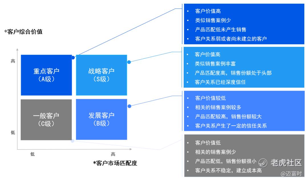 在客户的分层管理中,平台采取了以客户价值和市场匹配度为核心的二维划分法,帮助企业明确战略客户、重点客户和一般客户的区分。针对不同类型的客户,平台提供定制化的产品和销售策略,确保资源的高效利用和最大化的客户满意度。