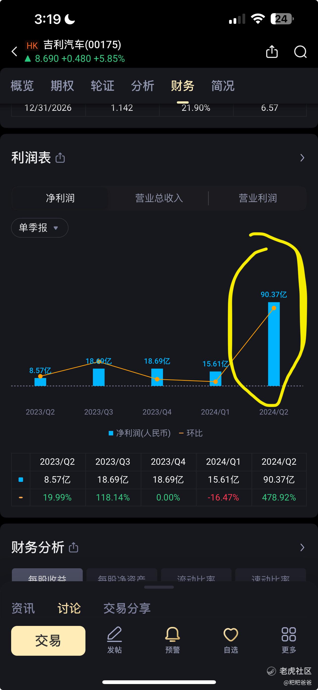 虽然涨了, 但是不懂为什么上个季度净利润环比翻了6倍 同比涨了478% 还不止, 没仔细看财报 请大神指教