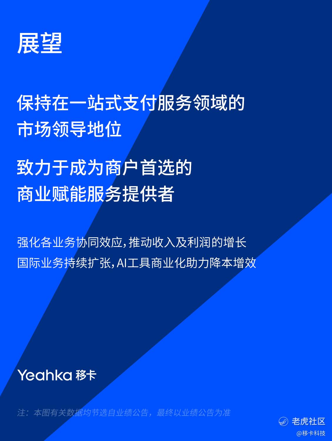 展望未来,移卡将继续强化业务协同、持续开拓国际业务、广泛应用AI工具以推动商业化能力提升,致力于成为商户首选的商业赋能服务提供者。