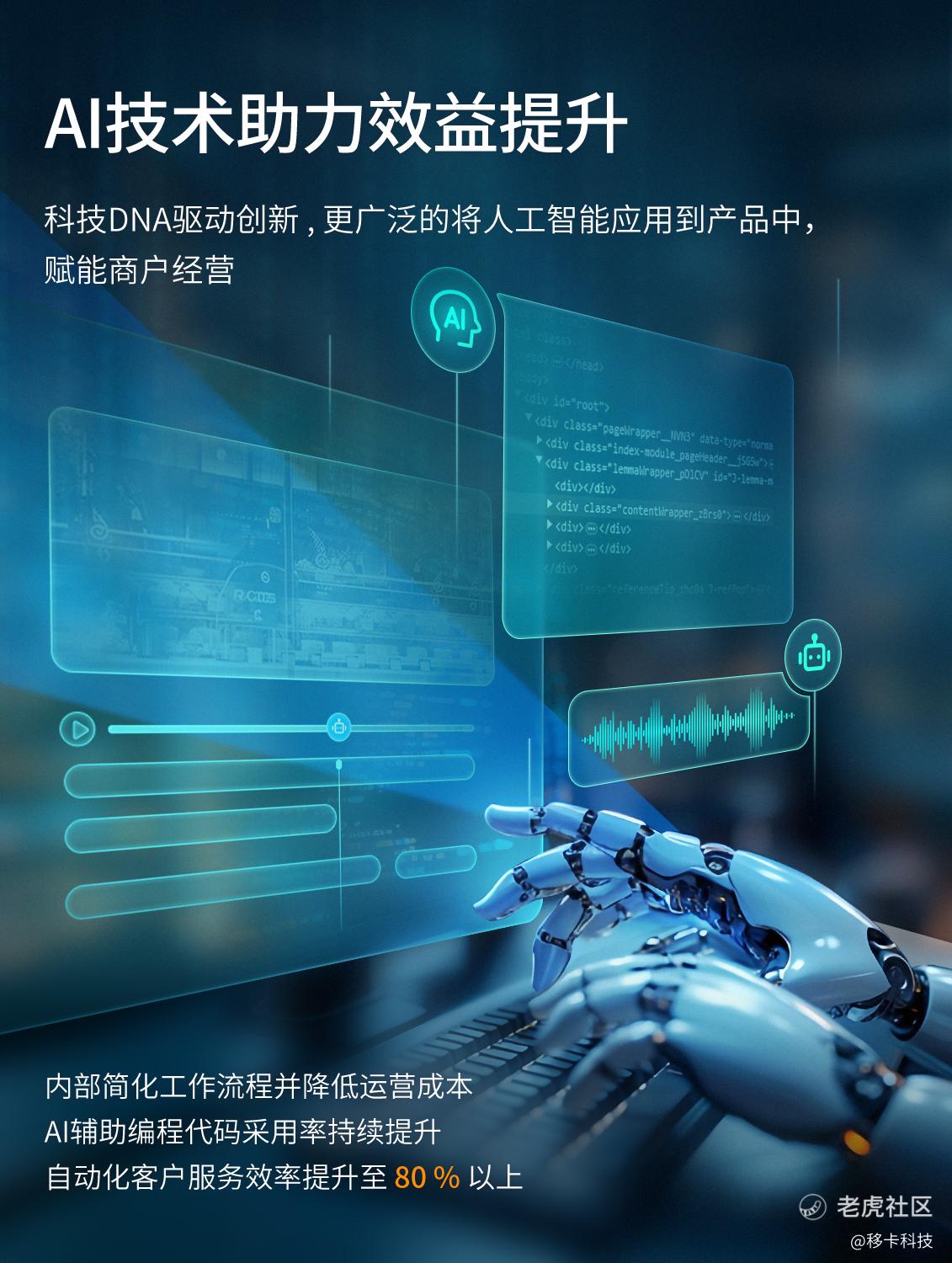 作为一家基于支付的领先科技平台,移卡专注为商户和消费者创造价值。上半年,移卡三大业务协同效应显现,商业化能力持续增强,海外业务亦取得突破性进展,同时以AI技术驱动运营效率进一步提升。