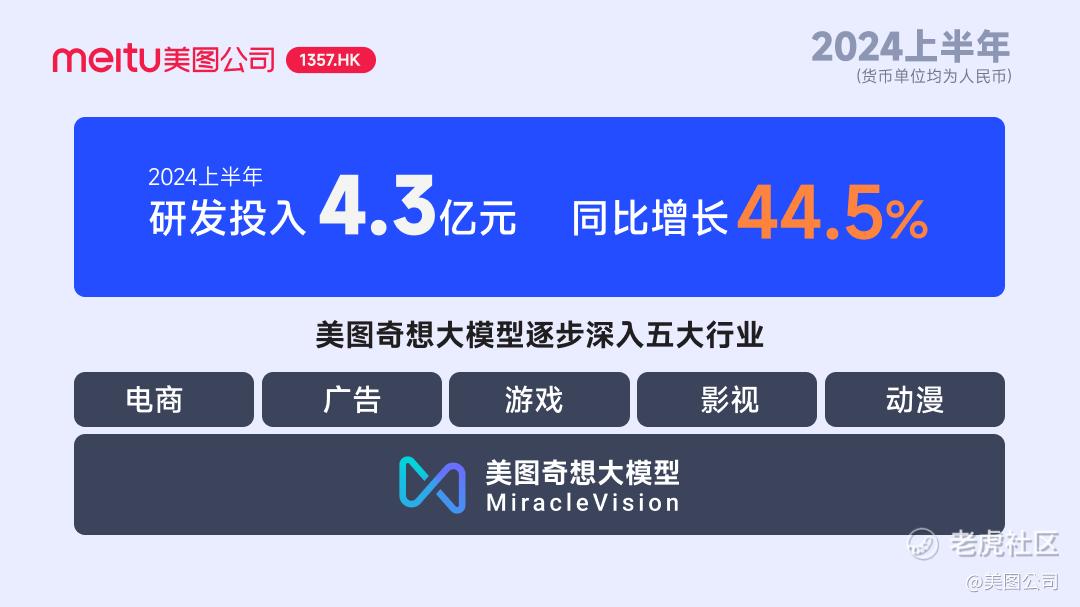 2024上半年,美图公司研发投入4.3亿元,同比增长44.5%,占总收入的26.2%。