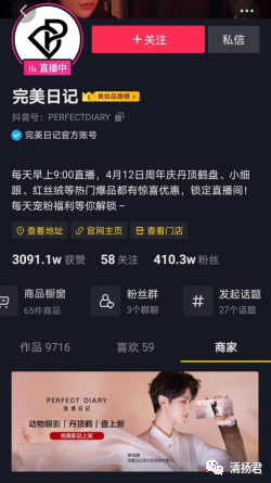 抖音新增的店铺活动banner功能,抖音品牌号可以利用账号页面,为新品上线、商品促销、爆款直降、直播等营销活动做预热和引流。完美日记的官方抖音号就为近日新出的丹顶鹤眼影盘着重宣传。