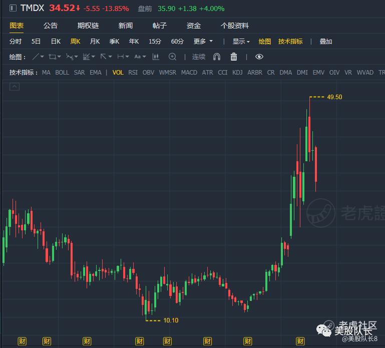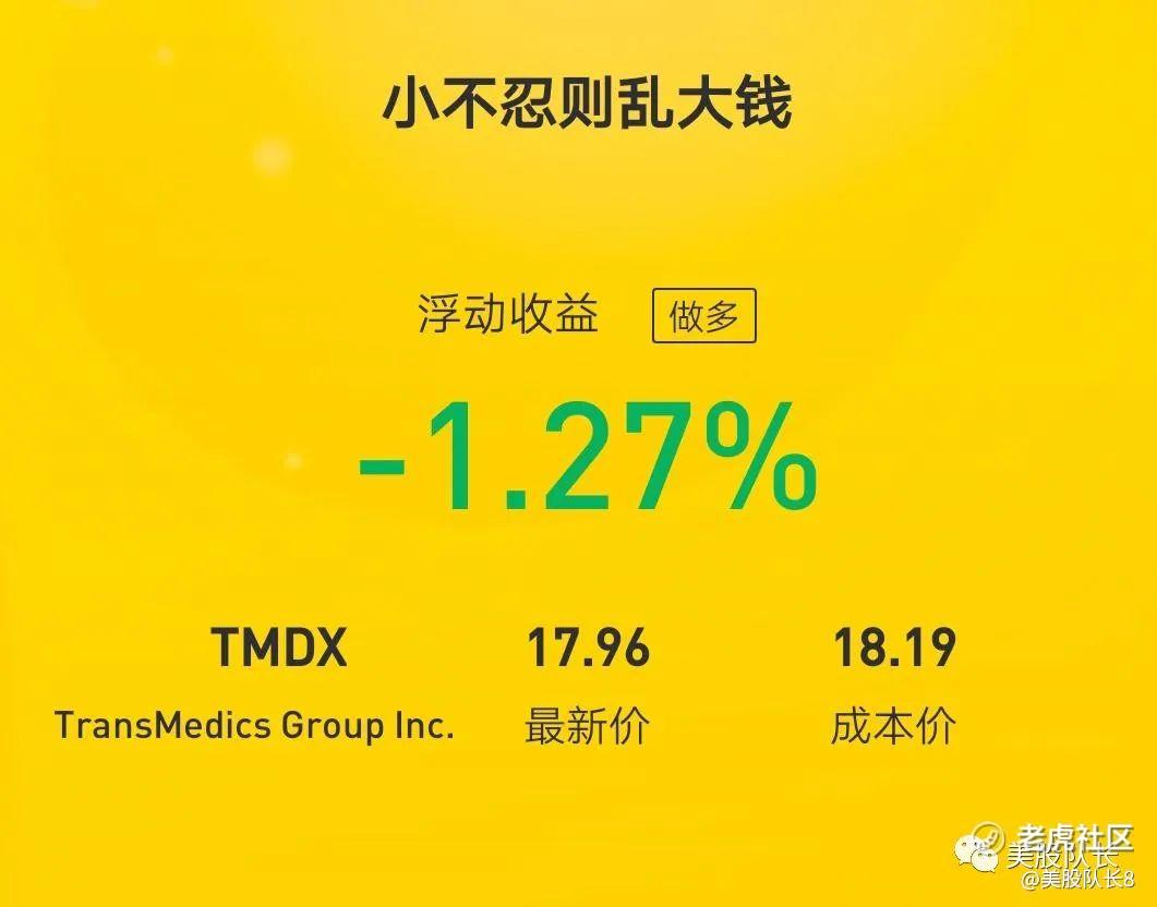 $TransMedics Group Inc.(TMDX)$ 当时的价格是18元,这个公司经过疫情fda审核器械延后的波折最低跌到了11.5,后面又大涨到最高49.5元,目前36元,不到一年时间正好翻倍。