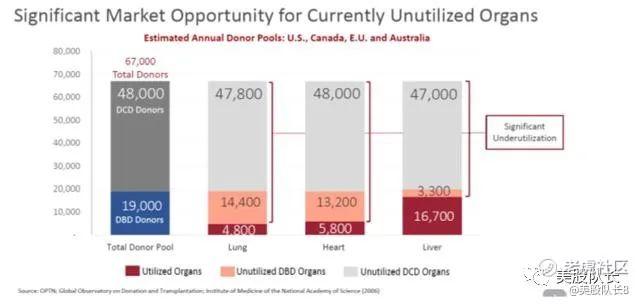 **市场面临的最大问题是器官的可用性。在美国18岁以上的1.56亿人已注册为器官捐献者,但每千人中只有3人以允许器官捐献的方式死亡。白宫已采取措施,通过独立评估器官采购组织的潜在捐赠者和捐赠率,增加器官的供应。根据TransMedics的数据,每年有67,000个潜在的捐赠者用于肺,心脏和/或肝脏移植。但是,当前的移植指南仅允许脑死亡后从捐赠者那里捐赠这些主要器官(“OTCPK:DBD“”,仅占大约19,000个潜在捐献者。其余的〜48,000个潜在捐献者经历了循环系统死亡(“ DCD”),并且根据当前的护理标准,其主要器官被认为无法移植。器官健康,患者适合性,地理位置由于时间和时间的限制,从最初的19,000个数字进一步减少了可用的捐献者库;根据当前的护理标准,肺,心脏和肝脏的实际利用率分别仅为7.2%,8.7%和24.9%[3]。