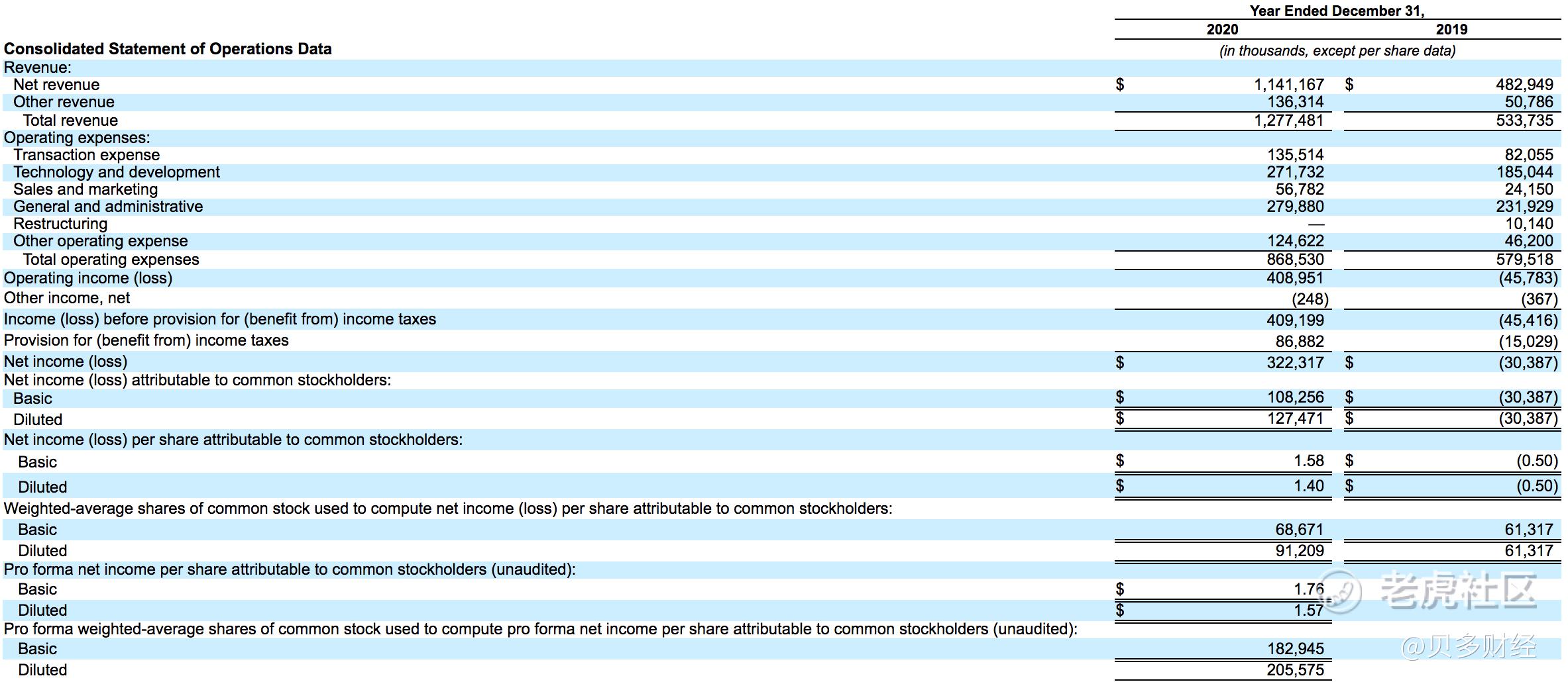财务方面,Coinbase在2019年、2020年的营收分别为5.34亿美元、12.77亿美元;运营利润分别为-4578万美元、4.09亿美元;净利润分别为-3039万美元、3.22亿美元。