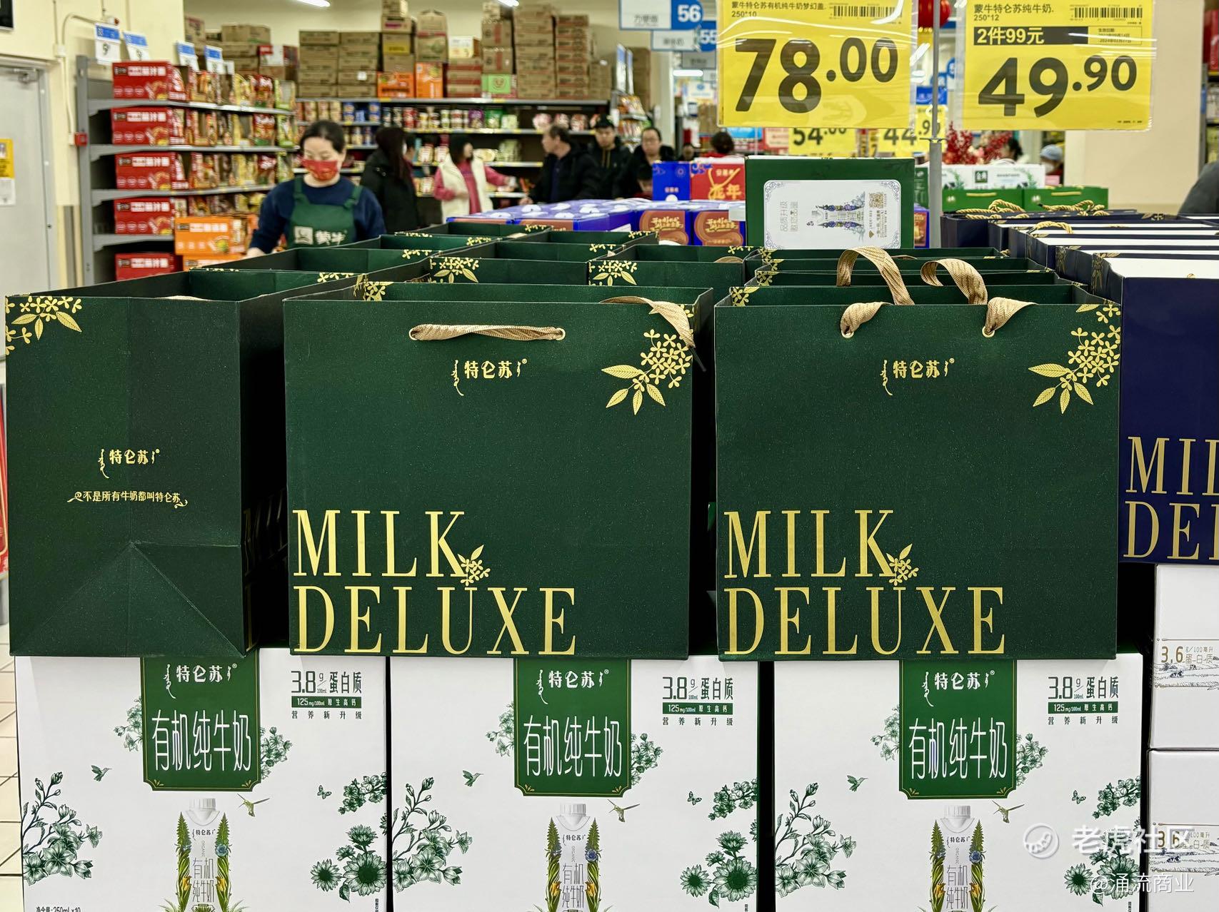 2023年冬季和2024年春夏,这些“大日期”折扣牛奶不难买到,线下临期食品店里堆砌着多品牌常温奶;线上平台上,许多店铺显示累计销售量已有数十万提。