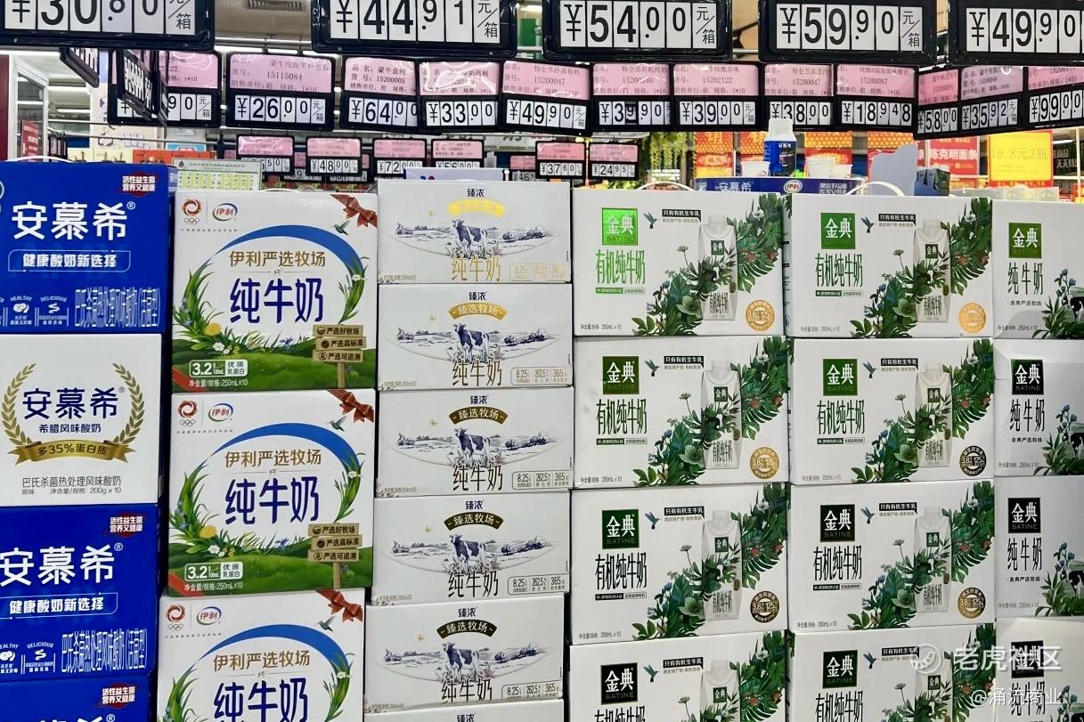 一盒250ml伊利纯牛奶,在商超的零售价是3元左右;但如果生产日期是4个月前,价格就仅有1.8元,整箱价格不足30元。