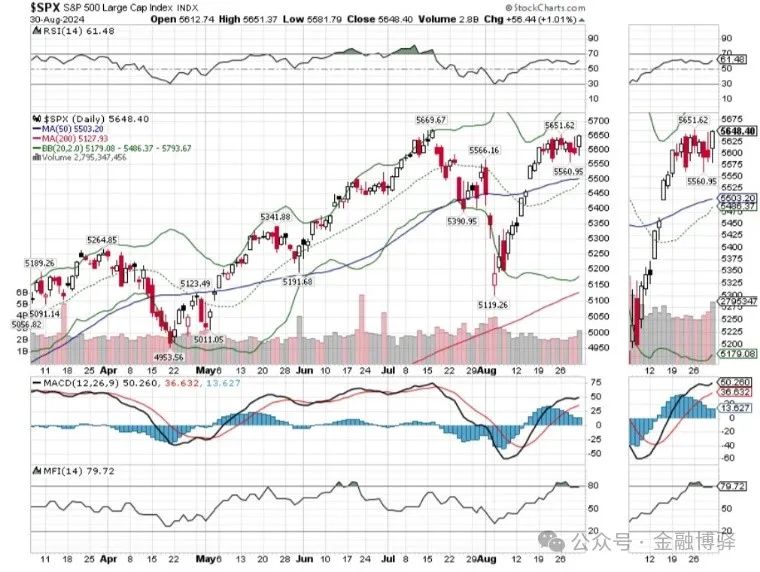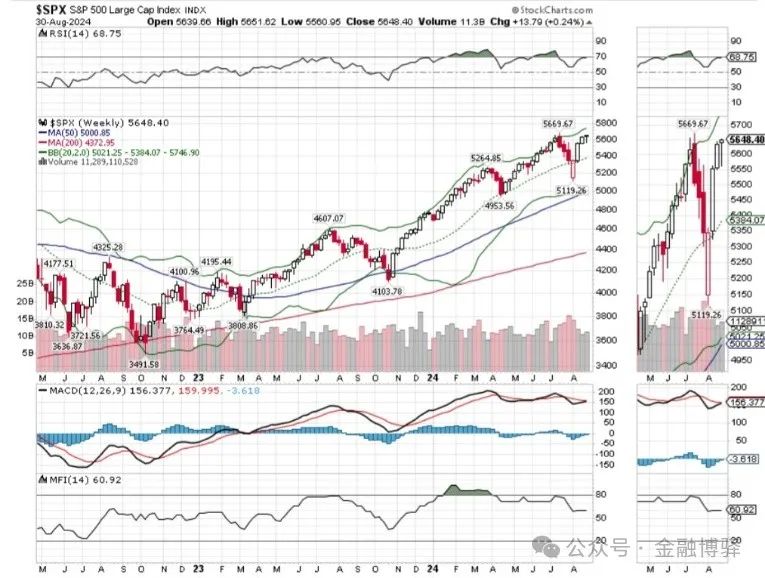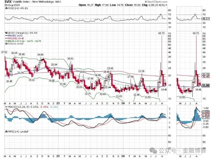 上周五说,‘’上看5650阻力,下看5550支撑,有效破了哪个就朝那个方向进步‘’。今天收上5650,算是有效,下周看涨。特别是,如果下周一VIX跌下14.70, 那么VIX周线会继续走弱。