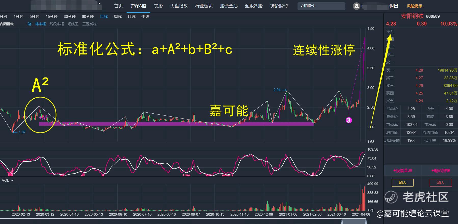 按照昨天缠论中枢所讲的,目前才是中枢A²(紫**域),按照缠论标准化公式:a+A+b+B+c ,安阳钢铁(600569)离中枢B²还有一段距离。所以说,选股有技巧的,特别是缠论短线追涨打板,一定是热点中筛选热点,好中选好,优中选优的模式。