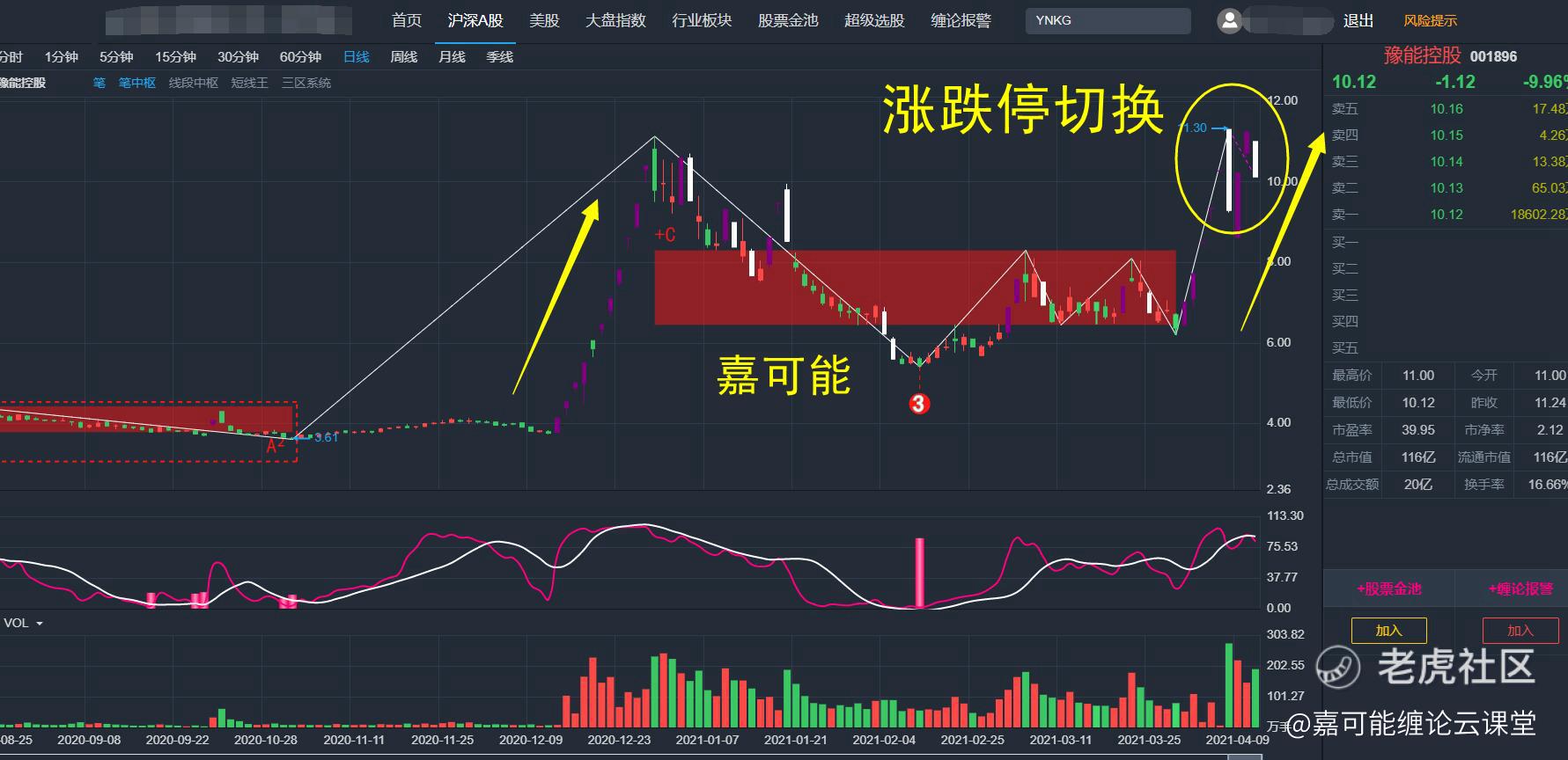 豫能控股(001896)也连续性涨停后,开始涨跌停切换模式,典型的短线获利了结类型,如下图所示: