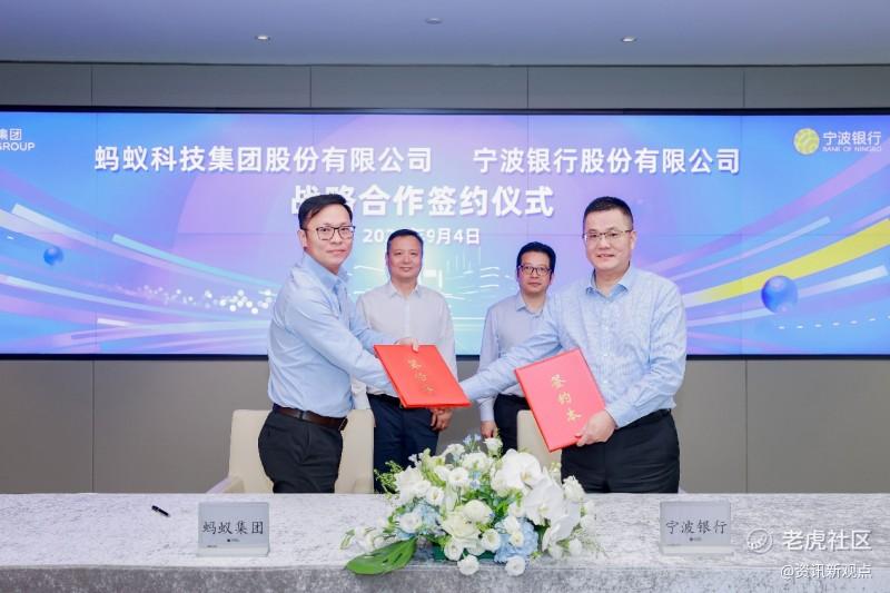 9月4日,蚂蚁集团与宁波银行签署战略合作协议。双方将基于“对等开放、互利共赢”的合作原则,在零售信贷、数字支付、财富管理、科技创新等六大领域深化合作,尤其是加强数字科技、基础技术应用等方面的交流与合作,加快构建互联网+金融的合作发展新生态,共同助力实体经济高质量发展。
