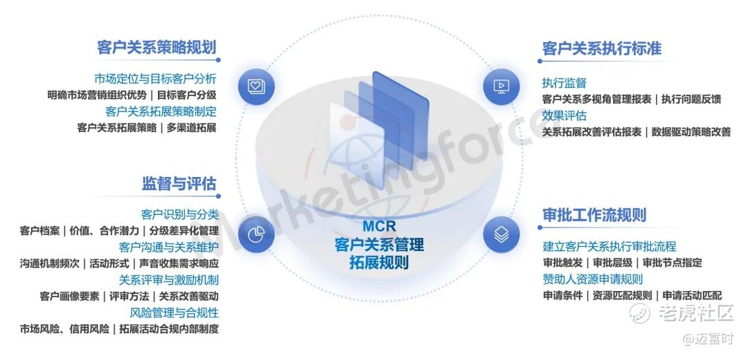 当下时代,企业管理必须超越传统的形式主义,比如简单的打卡和反馈,这些做法对于推动项目产出和提升竞争力的效果有限。因此,Marketingforce致力于帮助企业搭建一套全面的MCR(Manage Client Relationship)客户关系管理体系,以保障营销策略的精准执行和业务成效的提升。