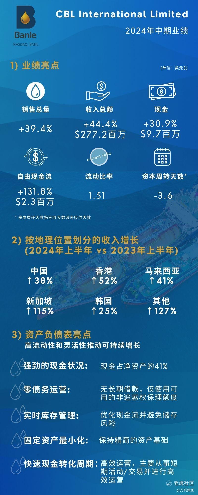 万利集团(以下简称「万利」或「集团」)之上市实体CBL International Limited(以下简称「公司」或「CBL」)(美国纳斯达克交易所代码:BANL),亚太地区知名燃油供应服务商,今天公布截至2024年6月30日2024年未经审计中期业绩。