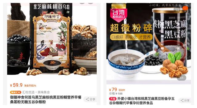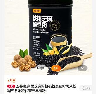 按某宝的日常价格,五谷磨房的随便一款黑芝麻核桃黑豆粉的价格是98元,同类型企业同款产品的价格不到其二分之一。诸如燕之坊等50块不到,像假日厨房每罐也就33元,有时活动还买一送一,就连台湾进口的外婆小镇也仅卖到79元。综合对比看,五谷磨房的定价是偏高的。