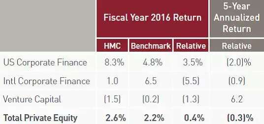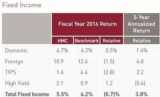 不过我们可以看一下他的收益情况,近年来比哈佛好不少。2016年3.4%。