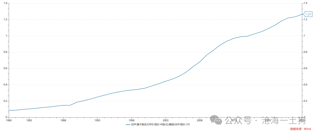 (ps:如上图所示,按照购买力平价汇率计算,我们的GDP已经是美国的1.27倍了。)
