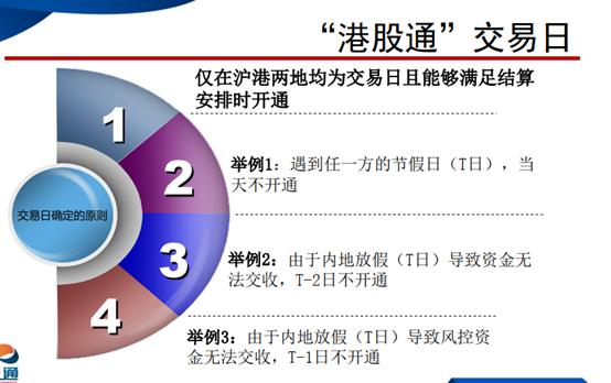 港股通的交易日期:仅在沪港两地均为交易日且能够满足结算安排时开通。注意:两个条件需同时满足哦。