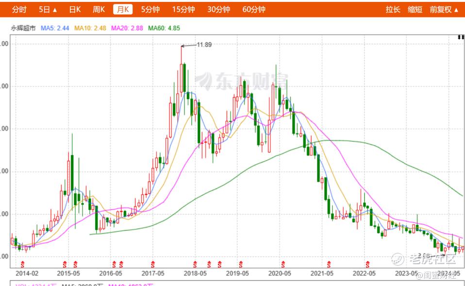 就在今年,永辉超市A股价格创下近10年最低点:2.08元。这距离其股价最高点11.89元缩水超80%。最近这三四年,永辉超市的股价一跌再跌,似乎看不到尽头……